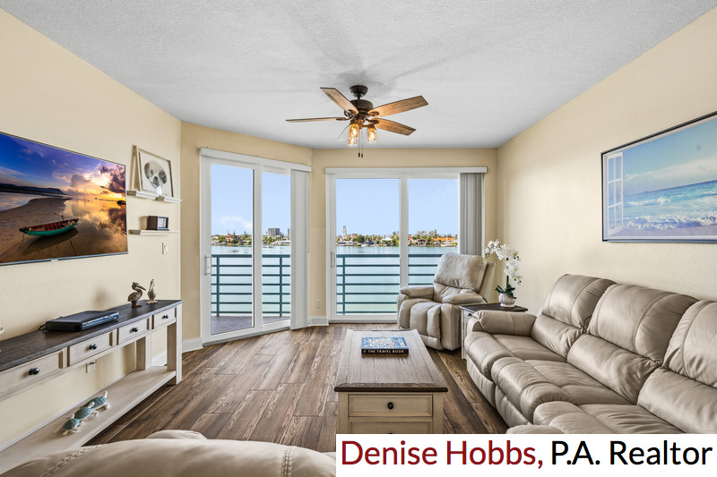 Welcome to Coral Pointe at Harbourside, located in the city of St. Pete Beach. This 2-bedroom, 2 baths with Den faces west allowing for beautiful sunsets. Sit on your private balcony while watching the dolphins, manatees, yachts and boats going by. It's pure Serenity! This unit has been totally upgraded which includes the following, wood planked tile flooring throughout, hurricane sliders, windows, gemstone surface on balcony, custom wood plantation shutters on every window, 2020 AC installation & Hot water heater is 1998. The Den can be used as an office or as a 3rd Bedroom. The closet can serve to store office supplies or for guest closet. The open concept Kitchen has matching refrigerator, microwave, dishwasher and stove. Granite countertops with farm style sink, sliding drawers for storage or pots and pans, large pantry and lots of cabinets. The guest bedroom can accommodate a king or 2 twin beds. Guest bathroom has a jetted whirlpool soaking tub/shower, updated vanity with granite counters and updated ADA toilet. The waterfront Livingroom/Dining room consists of 24x14 living space. The master has sliders leading to the balcony, wake up to the beautiful water views every morning. Custom Walk-in closet consists of drawers and hanging spaces. The master bath has walk in shower, makeup/vanity with granite counters. There is an assigned parking space in the under-building garage which is number 13. There is also guest parking under the building for guests. Being a St Pete Beach resident allows you access to the St Pete Beach Library, community center and FREE beach parking once registered at city hall. Harbourside is in close distance to downtown St. Petersburg, hospitals, grocery stores, shopping and of course the world-famous beaches. Amenities include 6 swimming pools, 5 tennis courts with 2 Pickle ball courts, 2 fitness centers, Jacuzzi, saunas, shuffleboard, 3 outdoor grills, 3 car wash station with vacuum & air, Electric Car Charging stations, Marina with 3 docks and 87 deeded slips. There is no deeded slip to this unit but there are slips available to rent or purchase from other owners. Harbourside’s Clubhouse has a full social agenda, card room, billiard room, library, woodwork shop and a Grand room with kitchen, great when catering events. Enjoy the 1.5-mile walking trail around the island, which allows you to watch the dolphins, manatees and sea birds or walk your pet. Coral Pointe allows owners one pet 20 pounds and under, rentals no less then 3 months. Come see and experience Resort style living at its best. Add this unit to your Wishlist, make an appointment to visit your piece of paradise